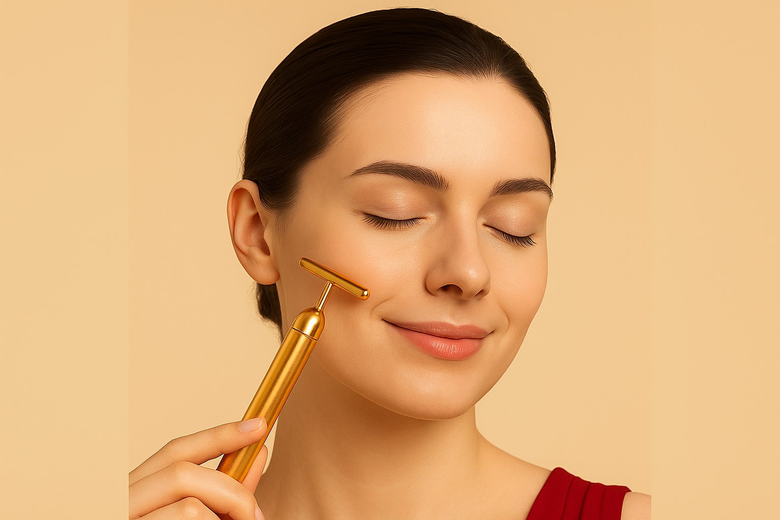 Experience luxury skincare at your fingertips. Our 24K Gold Facial Roller uses micro-vibration technology to boost blood circulation, tighten skin, and enhance your natural radiance. Perfect for reducing puffiness, lifting contours, and giving your skin that luminous, post-facial glow — every single day.